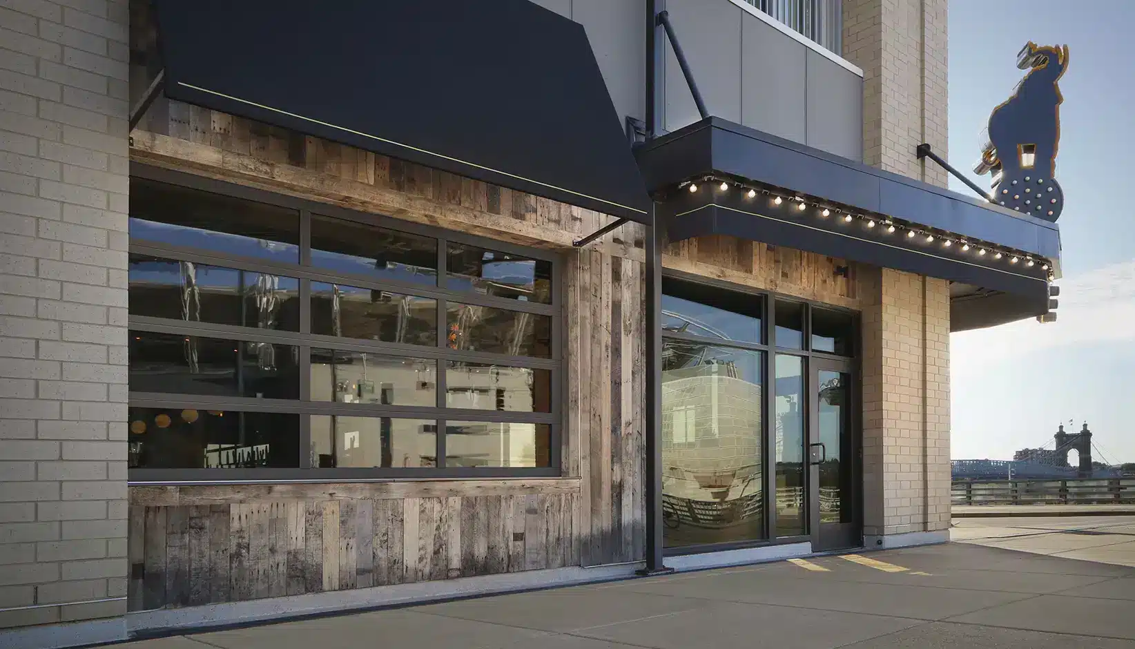 The VertiStack Clear door features a unique construction with sections that stack above the opening, eliminating the need for overhead tracks. This allows for a clear ceiling and won’t conflict with mechanical, electrical or plumbing fixtures located in the ceiling. Designed with a clean, modern aesthetic, there are no hinges or exposed tracks or cables, and it is available with a variety of aluminum finishes and window materials.